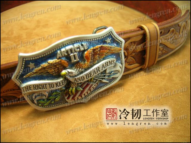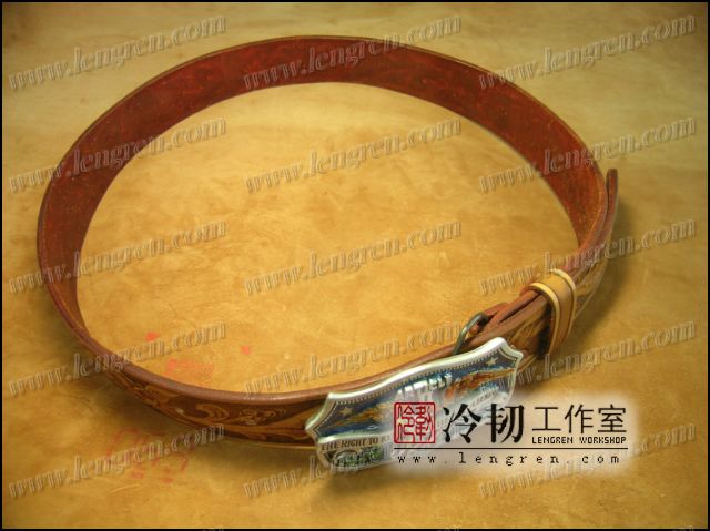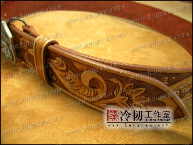 美国进口腰带扣,配手工雕刻唐草花卉皮带