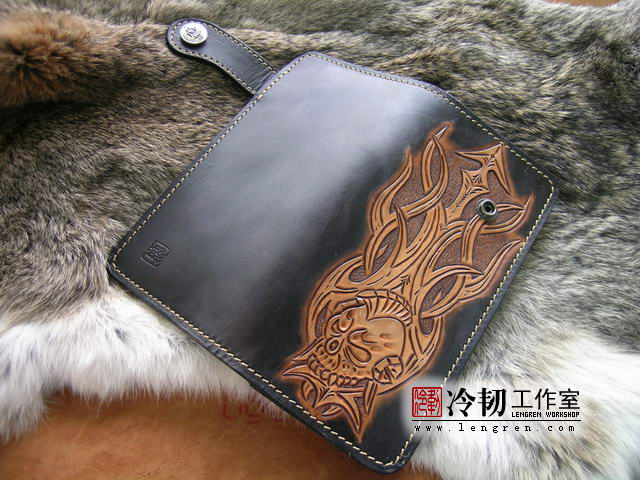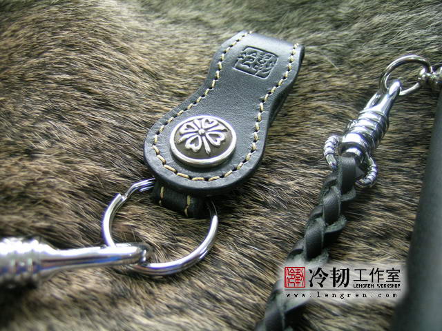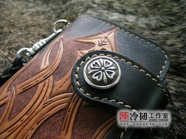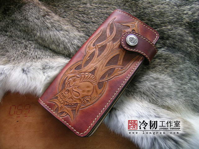 头层植鞣革制作,手工雕刻火焰骷髅图案,可佩皮链