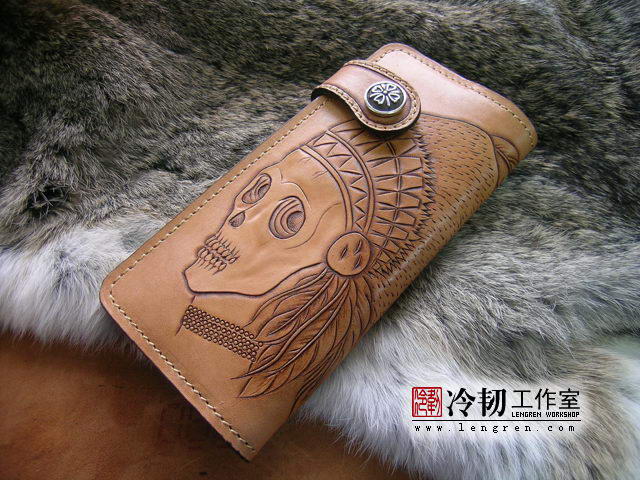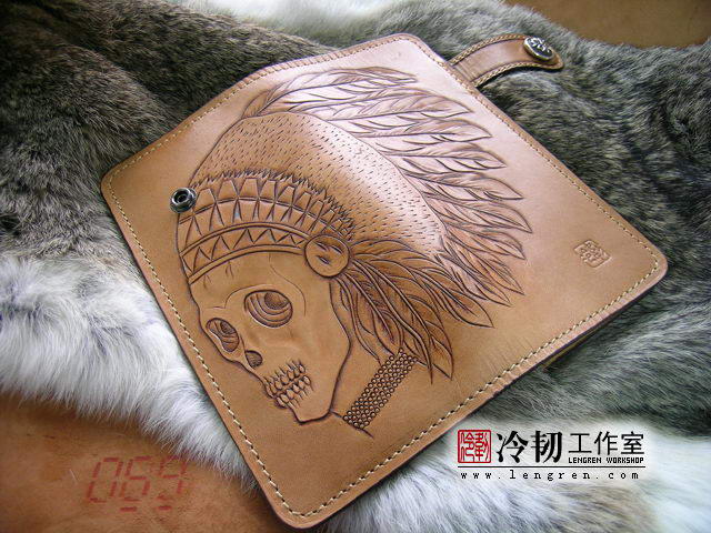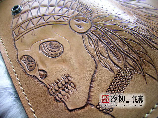 头层植鞣革制作,手工雕刻印第安酋长骷髅头,机车风格