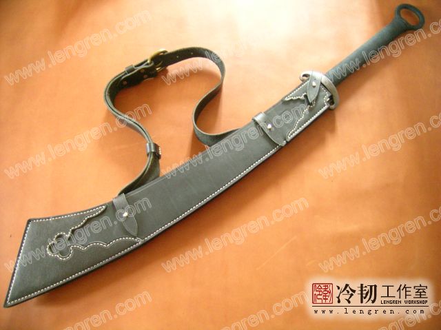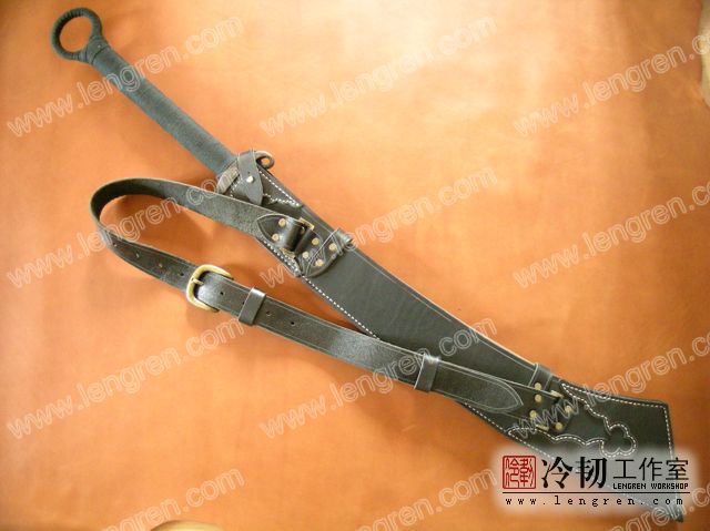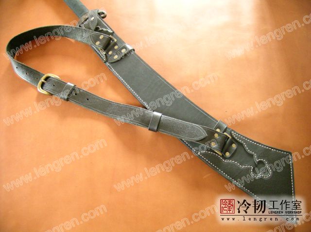 4mm头层牛皮缝制。刀鞘前端三层缝制,刀刃不会划伤内部缝线。结实耐用。