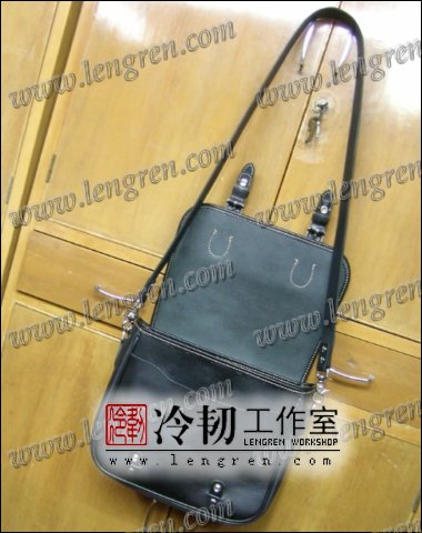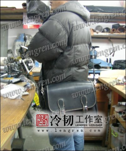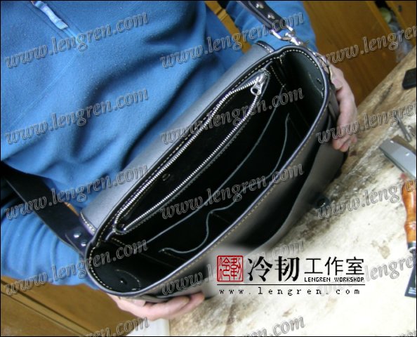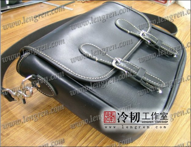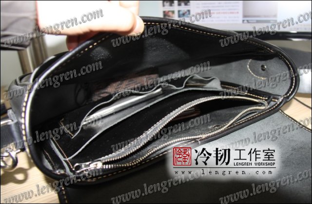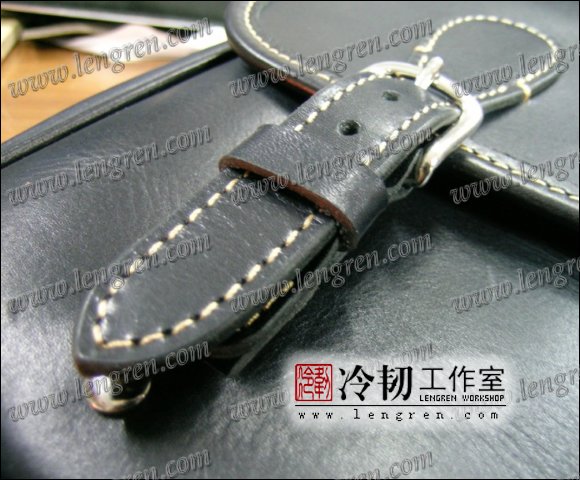 黑色头层植鞣牛皮缝制,内部有拉锁包,手机位。 纯铜扣(电镀处理)。