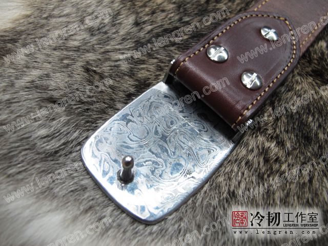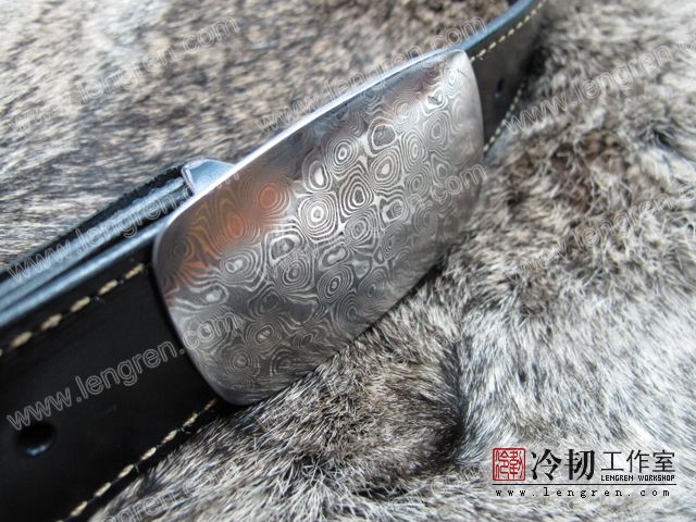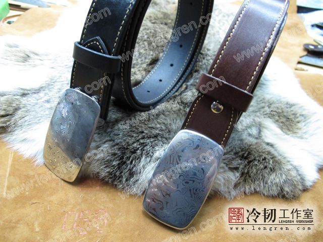 手工定制大马士革不锈钢带扣,双层4mm头层牛皮,可缝制黄线,黑线。尺寸按照客户实际腰围量体裁剪。