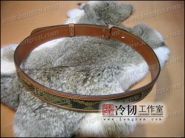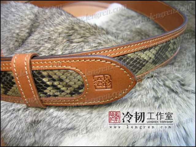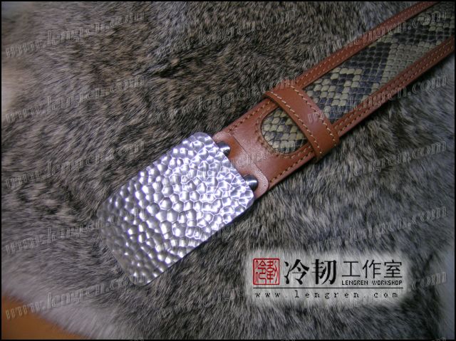 手工定制925银带扣,双层4mm头层牛皮,镶嵌蟒皮。尺寸按照客户实际腰围量体裁剪。