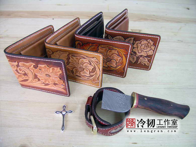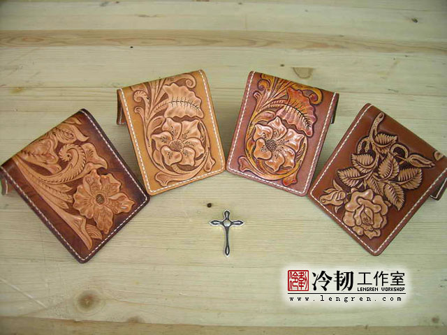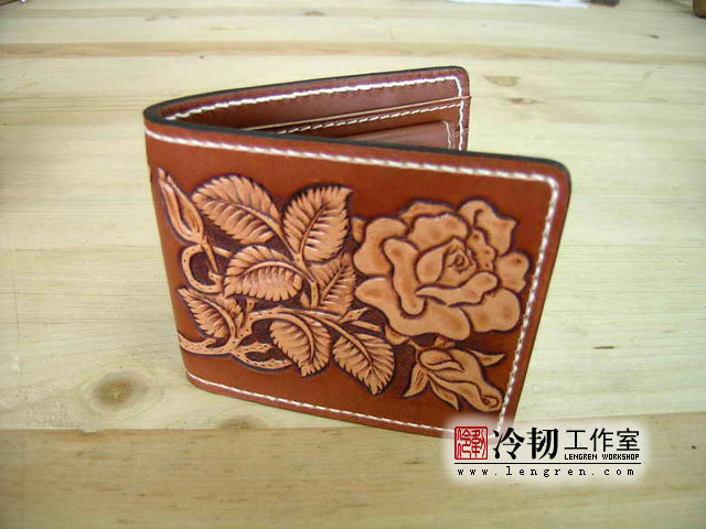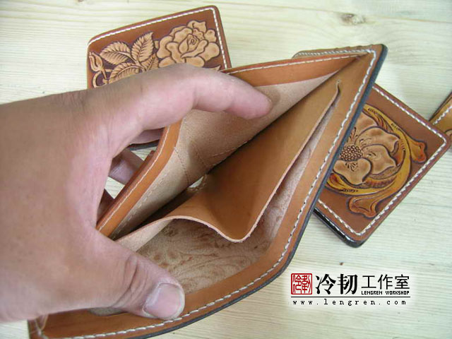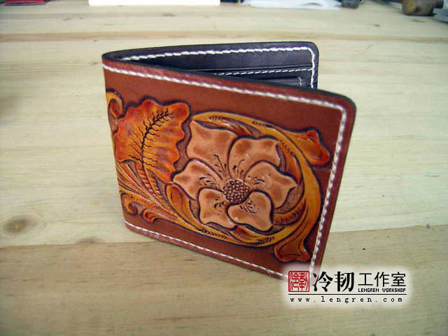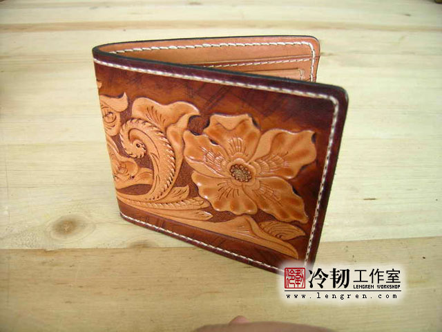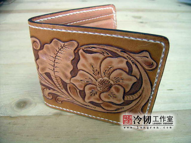 手工雕刻唐草花纹,内部头层牛皮缝制。