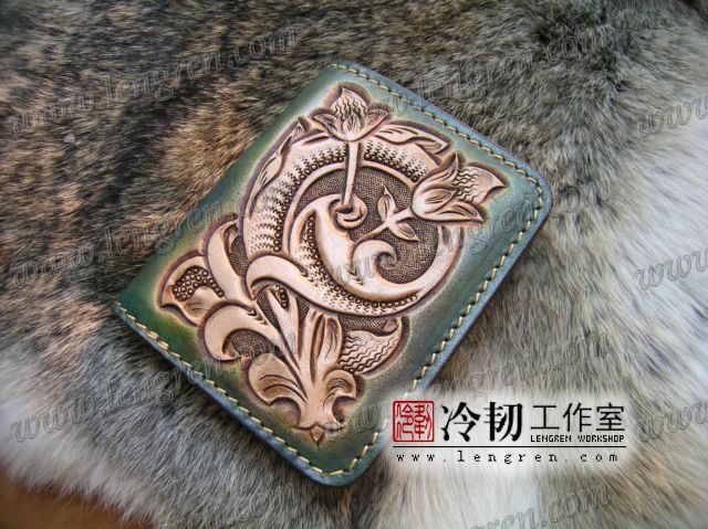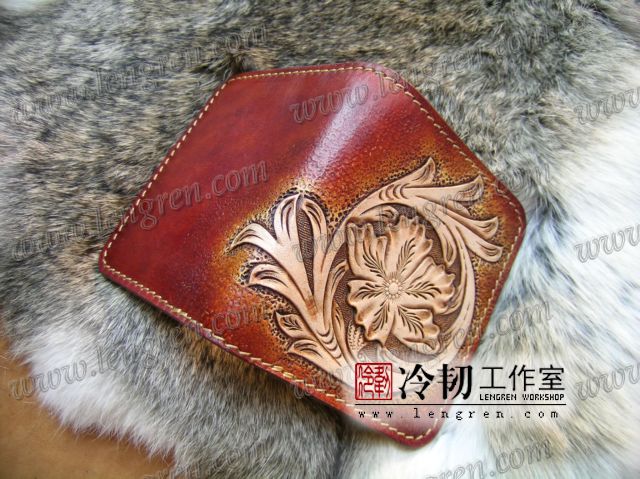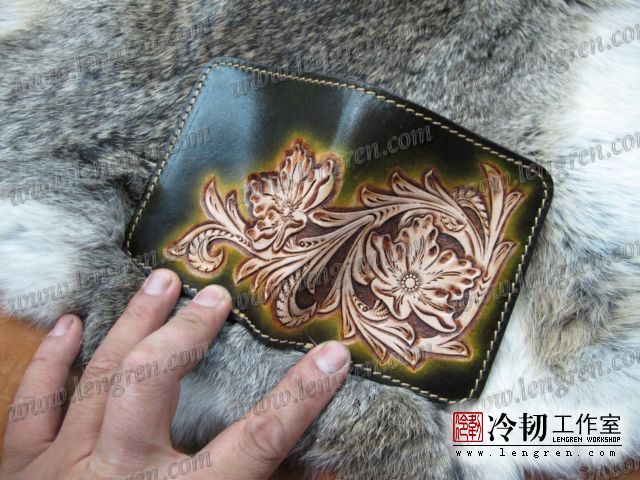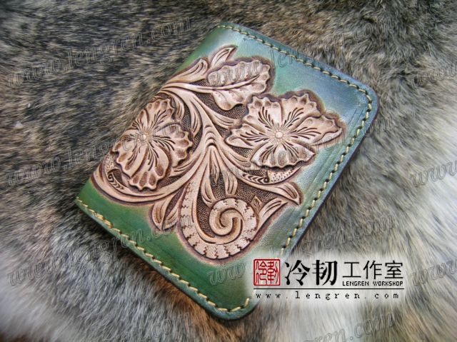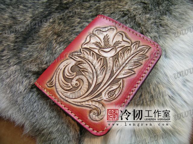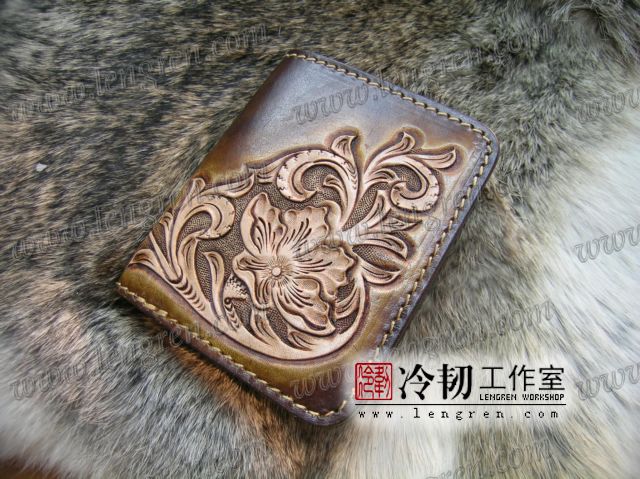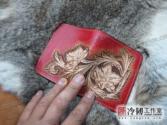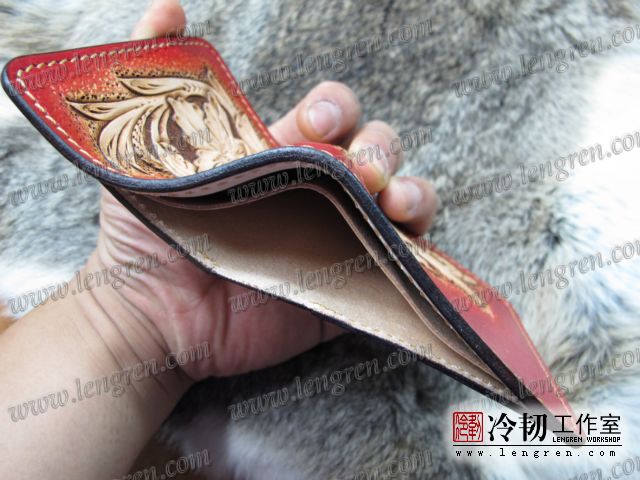 手工雕刻唐草花纹,3卡位,1照片位。可装2000左右现金。