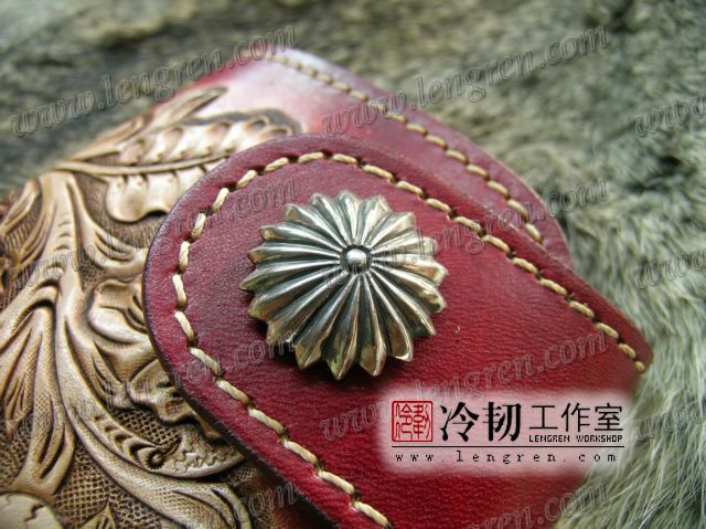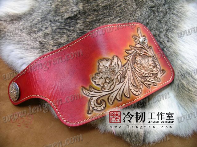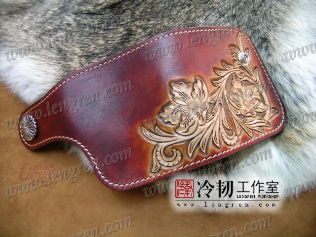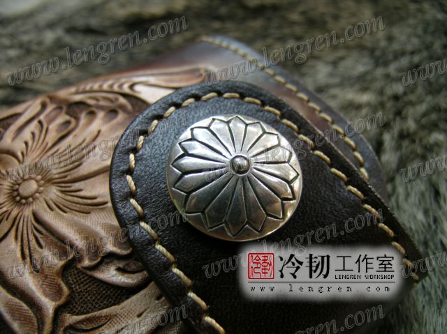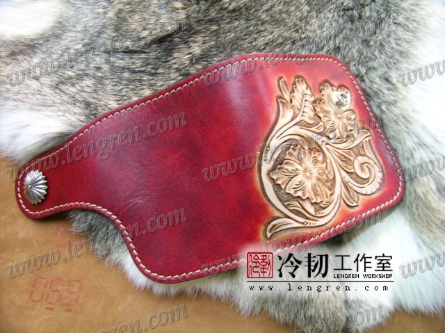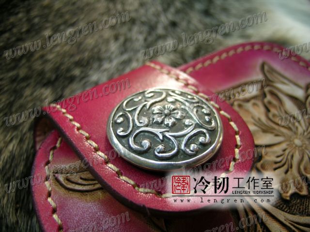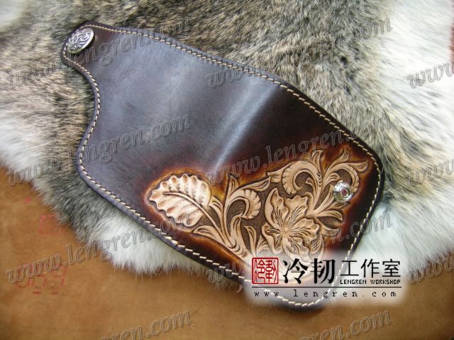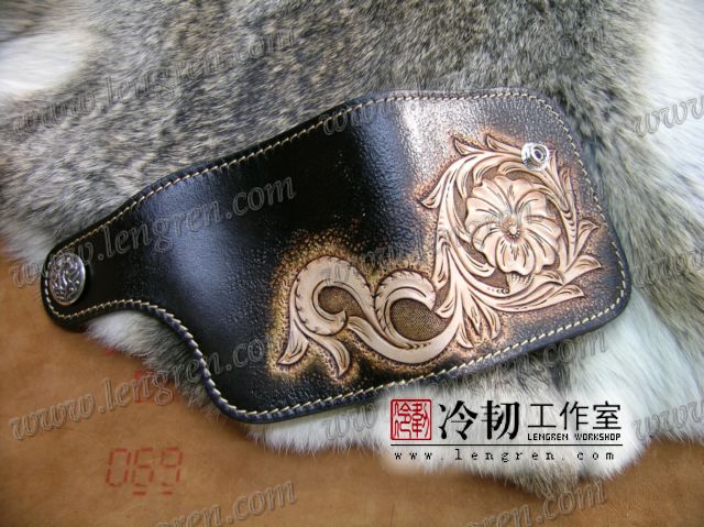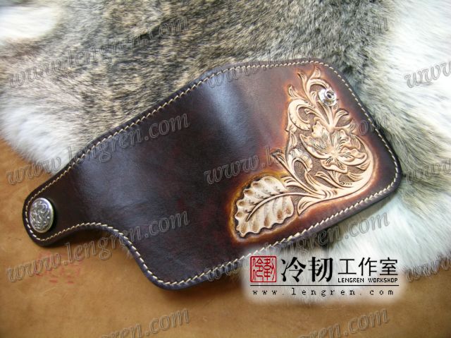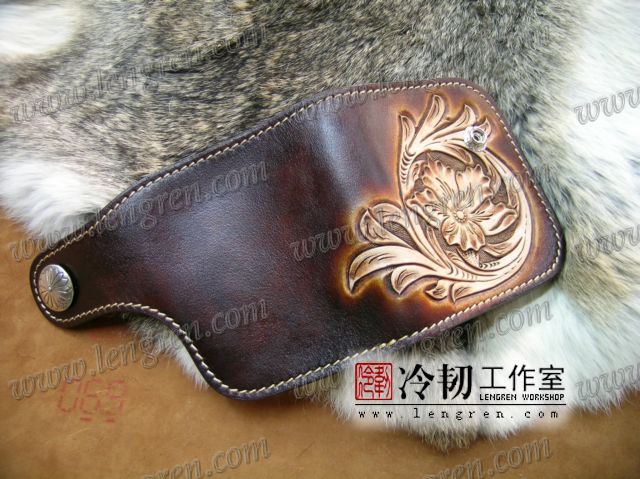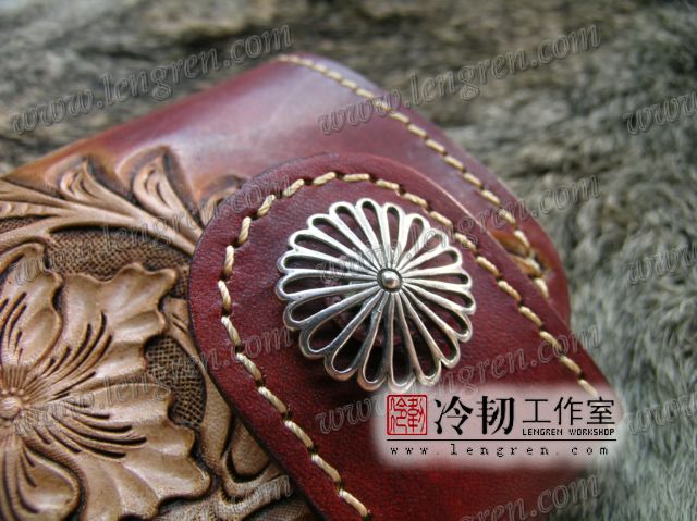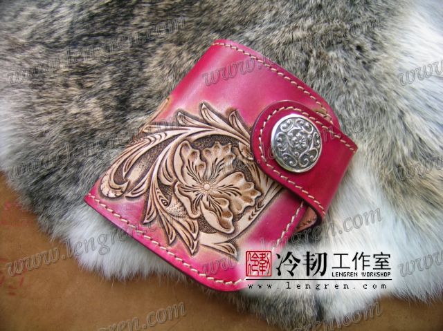 头层牛皮缝制,4卡位,拉锁零钱袋。可放两千块左右,适合放在衣兜,裤兜里。方便携带。硬币装饰扣。925银装饰扣。手工雕刻唐草花纹,彩色。
