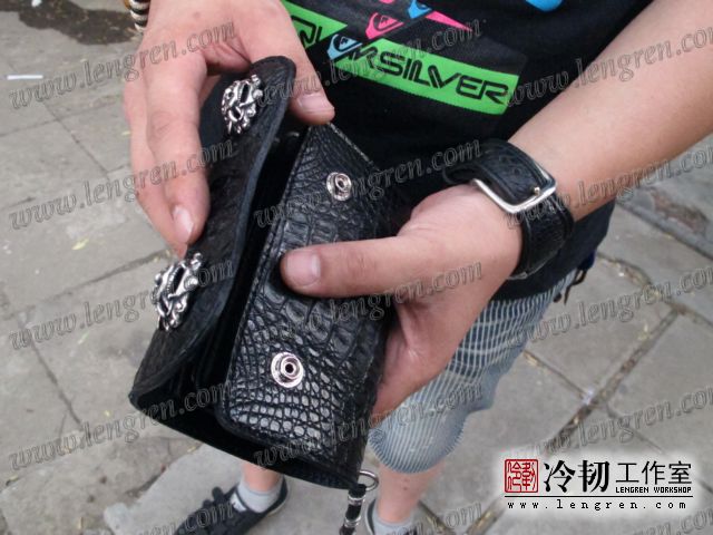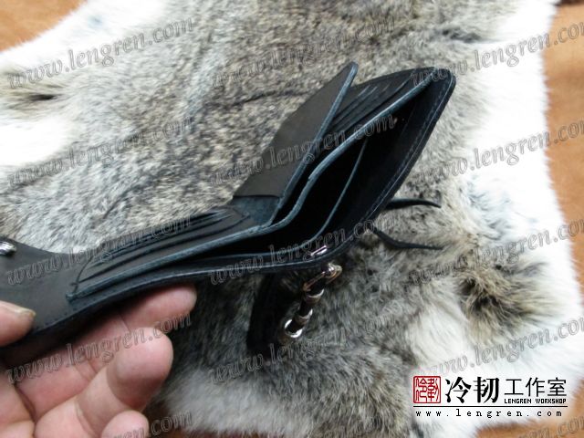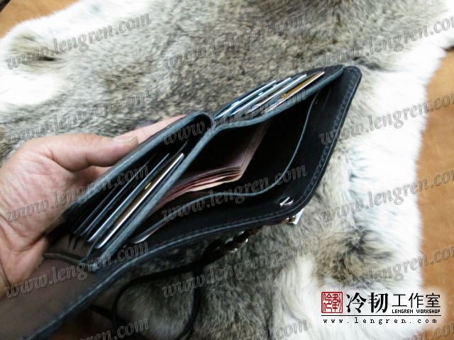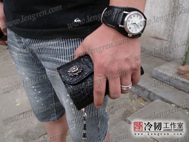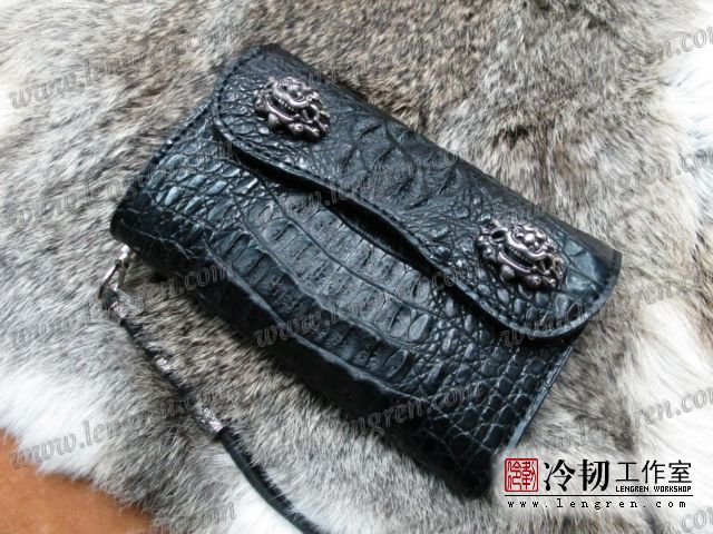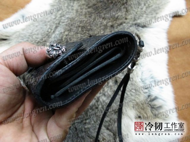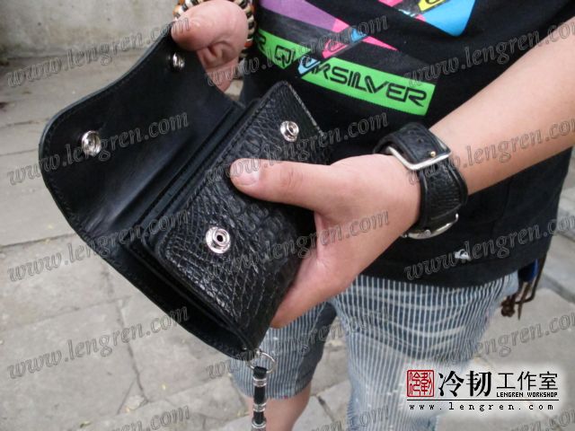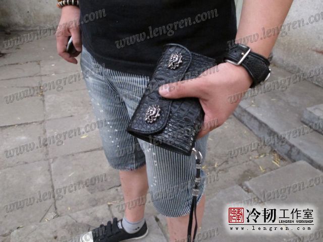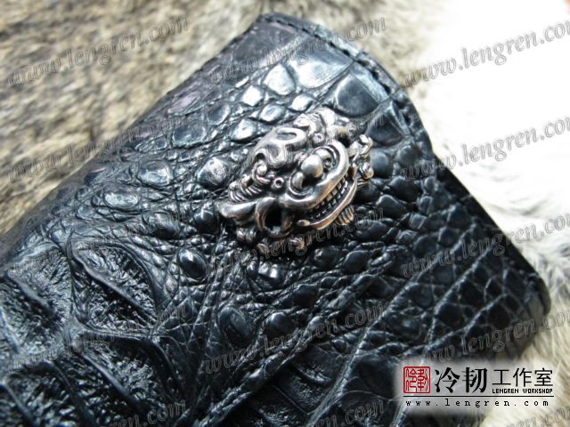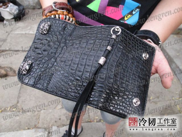 鳄鱼皮缝制,内里为胎牛皮。925银装饰扣。多卡位,照片位。配鹿皮流苏。