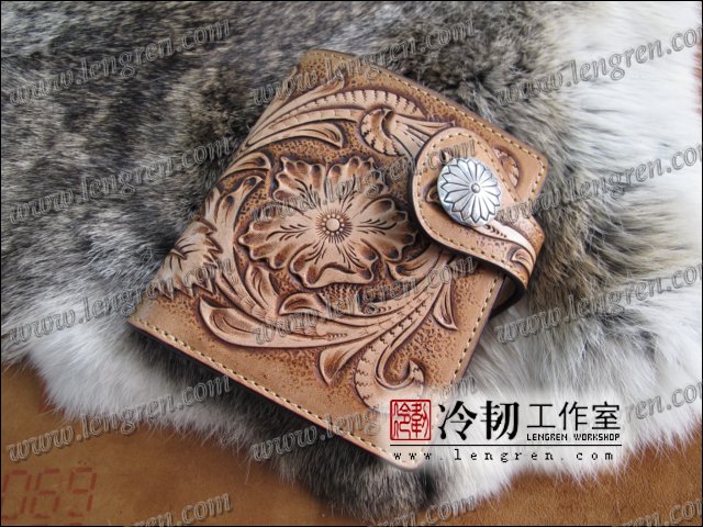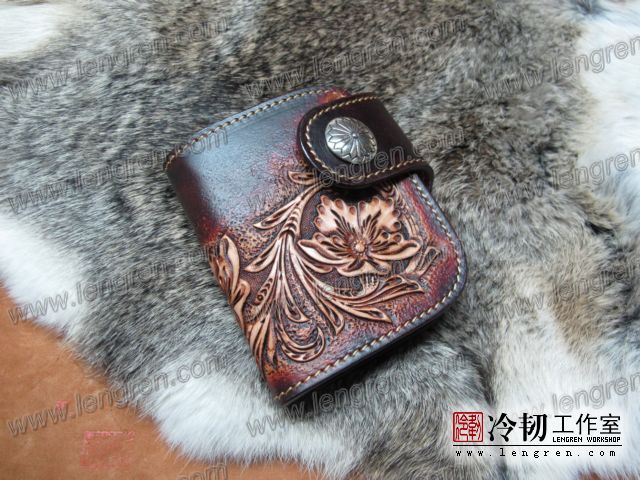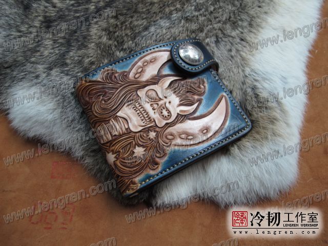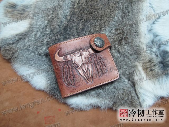 雕刻牛骷髅短钱夹