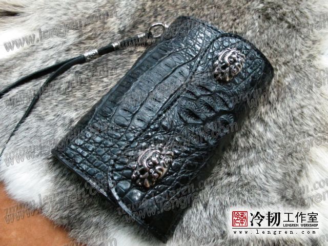 三折鳄鱼皮长钱包