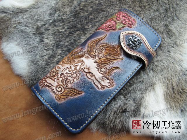 蓝色牡丹狮子钱包